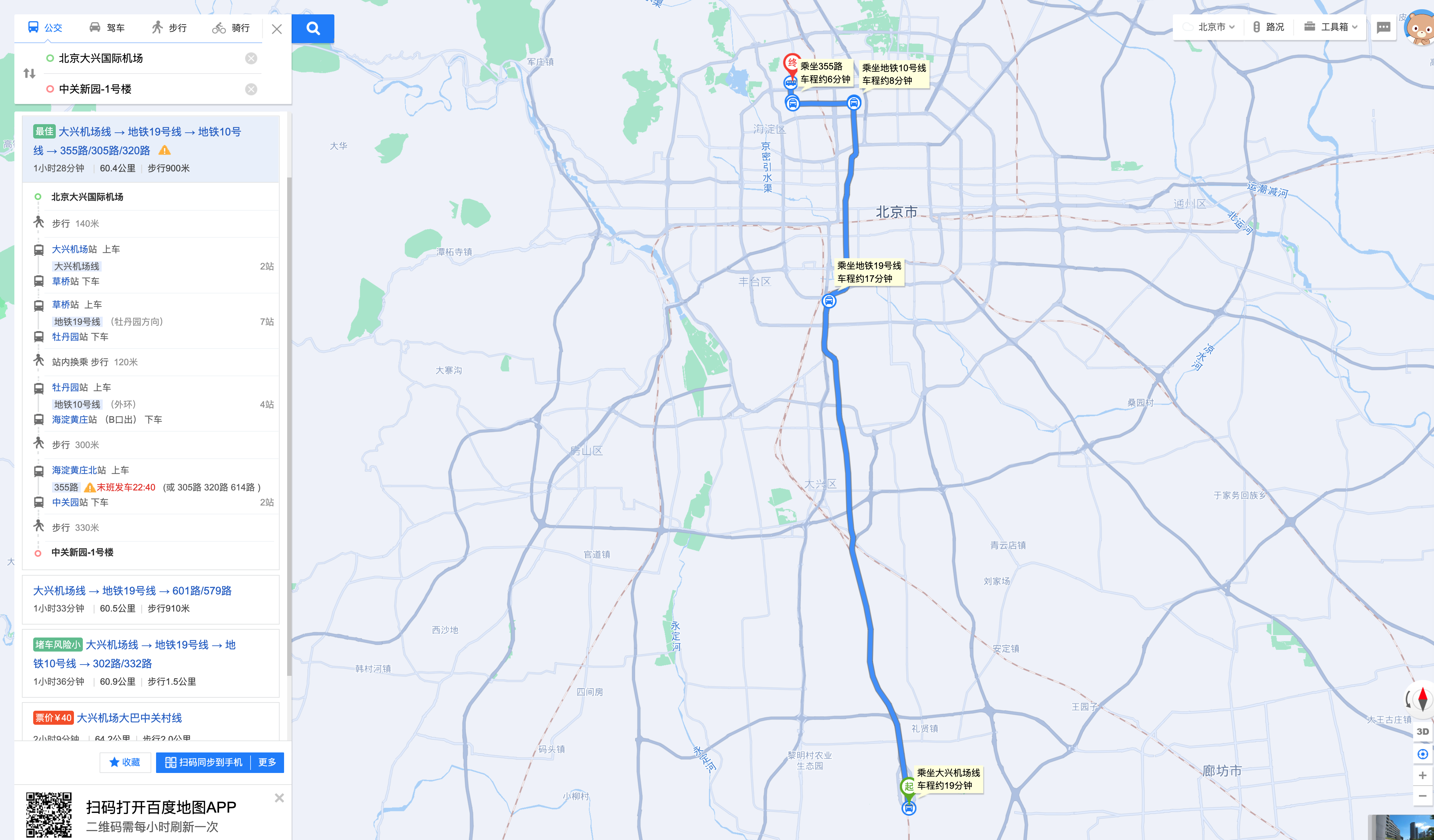 From Daxing Airport station (Daxing Airpot subway line) -> Caoqiao station -> Subway line 10, Haidianhuangzhuang Station (Exit B) -> Haidianhuangzhuang North Bus Station No.355/305/320/614 -> Zhongguanyuan Station
